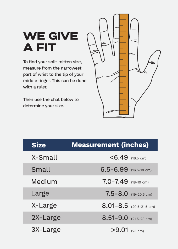 Measure from the base of your wrist to the tip of your middle finger. This measurement is the best indicator of your size and should guide your size selection. Like a good saddle or a favorite pair of boots, these mittens get better with time.