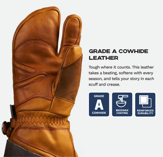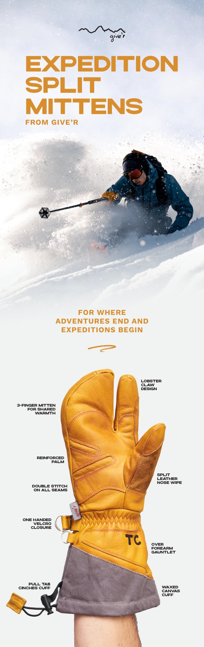 Born in the mountains of Jackson Hole, WY, this is your 3-fingered, lobster-clawed, glove/mitten hybrid built for the gnarliest, coldest, most give-it-your-all days of winter. Snowmobiling in a whiteout, breaking trail at -20°F, scraping ice off your windshield at sunrise, these mittens are built to perform.