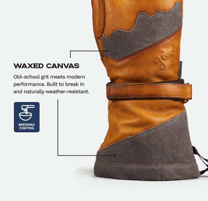 Each pair's first hands are our hands: hand-waxed, hand-branded, and made from premium Grade A leather. We’ve paired it with long-proven waxed canvas, our highest-grade Thinsulate insulation, and a 100% waterproof membrane. Together, these materials take on snow, sleet, slush, and whatever else winter throws at you.