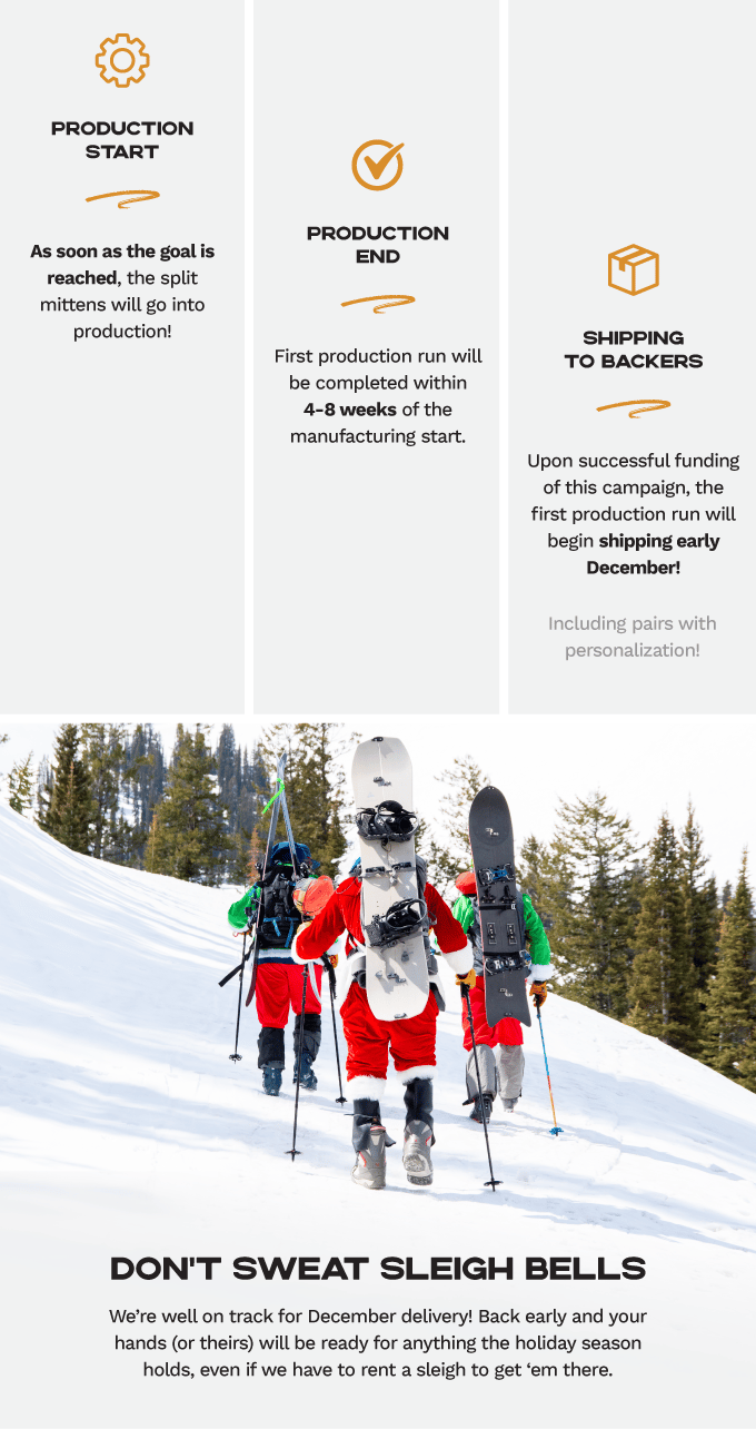 We have put a lot of thought into these beauties and what is needed to execute on the production, shipment, and game plan to get into backers’ hands ASAP, knowing winter and the holiday season are knocking on the door. The spreadsheets have been compiled, our waxing and branding muscles stretched, and all is in place to give'r once our goal is reached!