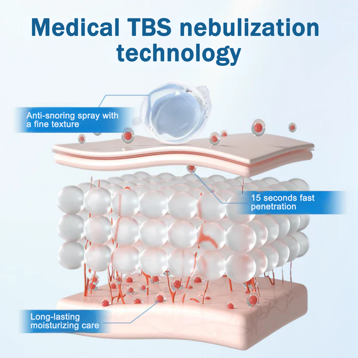 38x the efficiency advantage– Compared to standard sprays, TBS mist achieves up to 38 times higher tissue absorption, resulting in faster and longer-lasting snoring reduction.