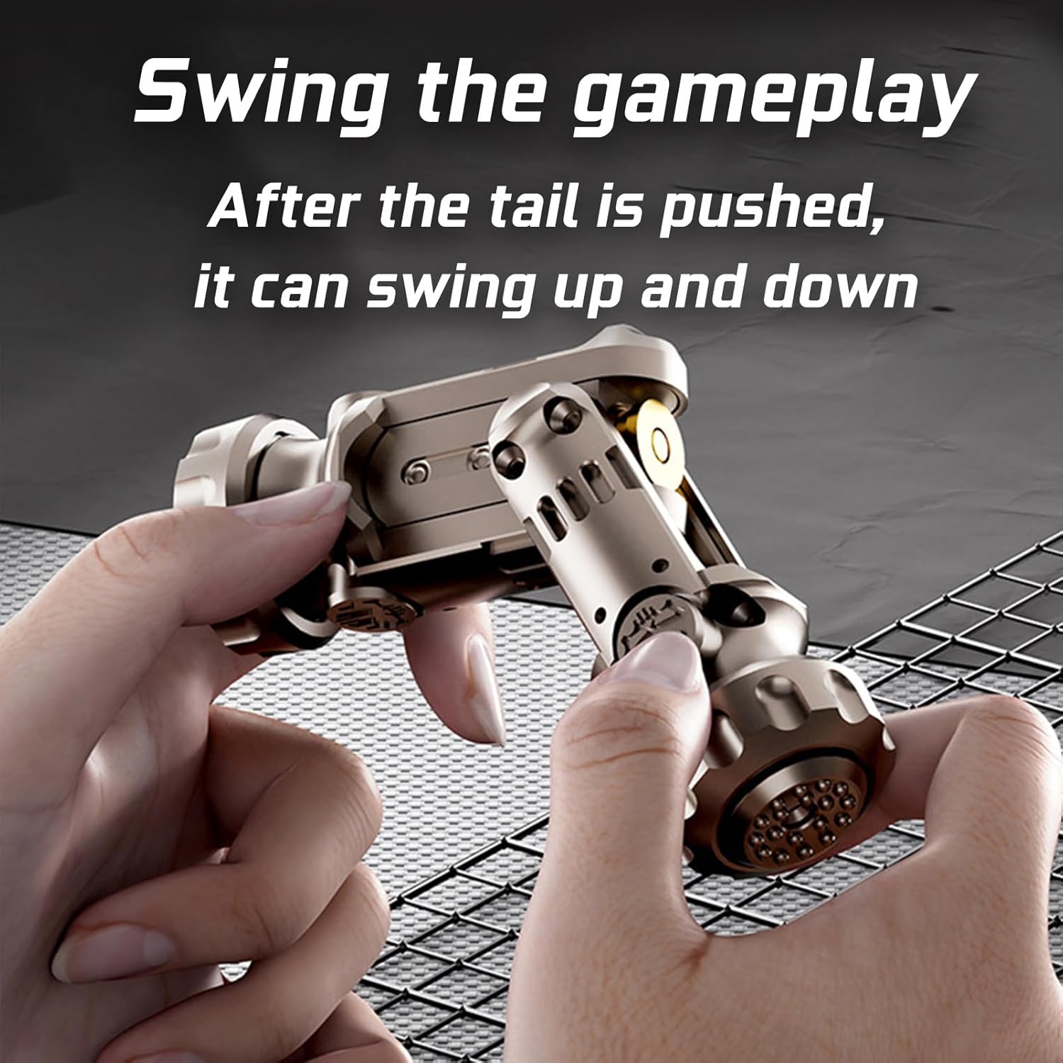 Features diverse fidgeting ways: one-button shell ejection, articulated parts for varied actions, glow strips for visual appeal, high-speed smooth rotation (minimal resistance), and a "da da da" sound effect (as an ography metal fidget slider gun).