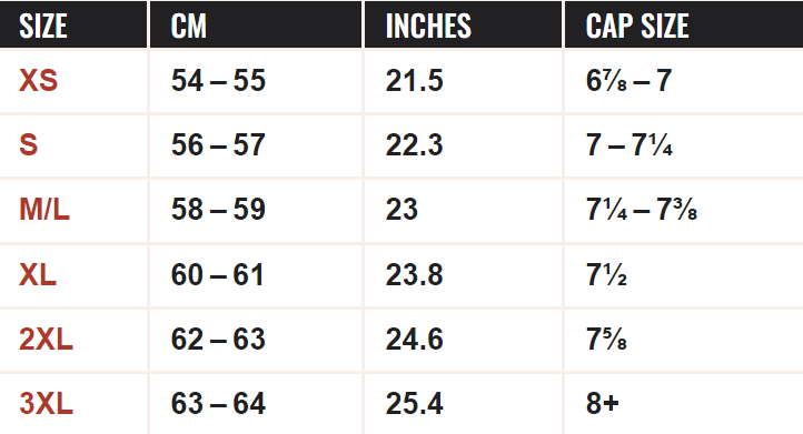 Eight Panel Size Chart